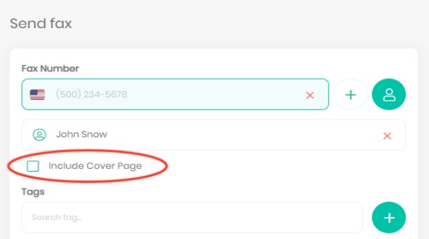 If you wish to add a tag to the fax (this will show up in your fax history), simply click in the tag search bar and search or add tags here