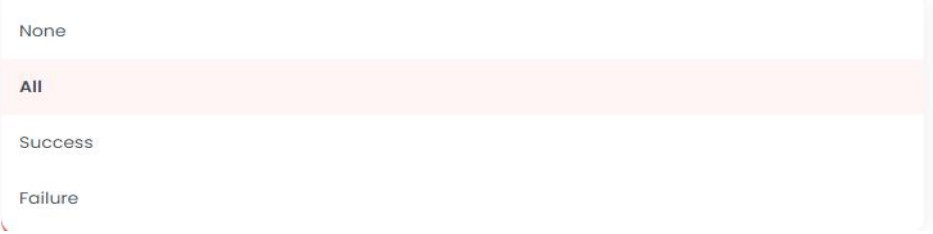 You can set email notifications for inbound and outbound fax status from All to None, Success, and Failure.