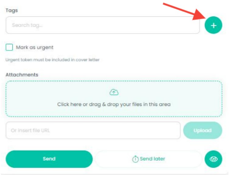 You can also add or create a tag right from the send fax screen like shown in the screenshot below. You can create a tag by selecting the plus on the right hand side. You can add a tag before sending the fax by clicking in the tags field and selecting the tags you'd like to add.